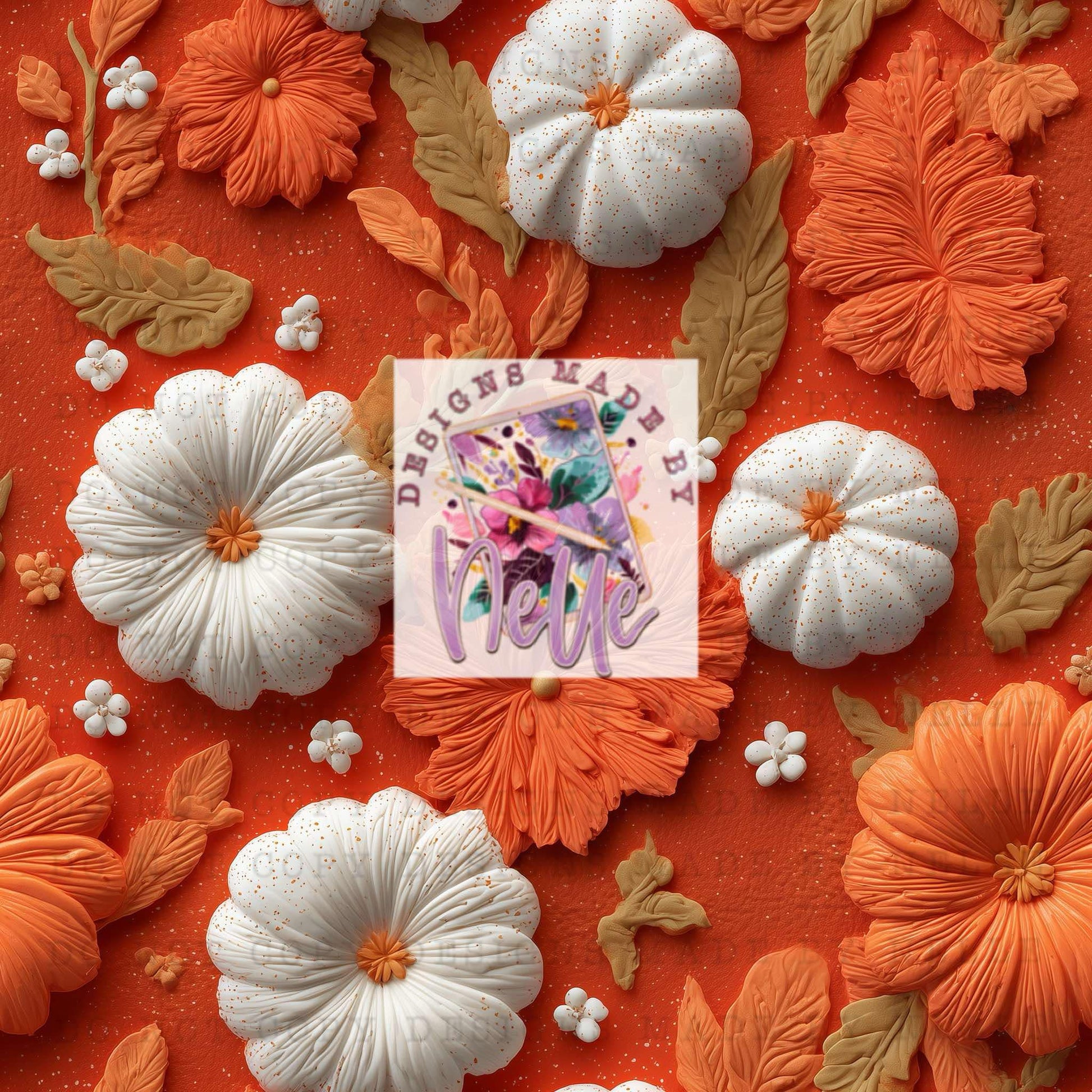 Orange background white pumpkins